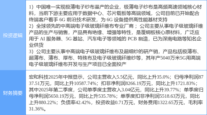 10月28日宏和科技涨停:玻纤PCB板6G概念热股
